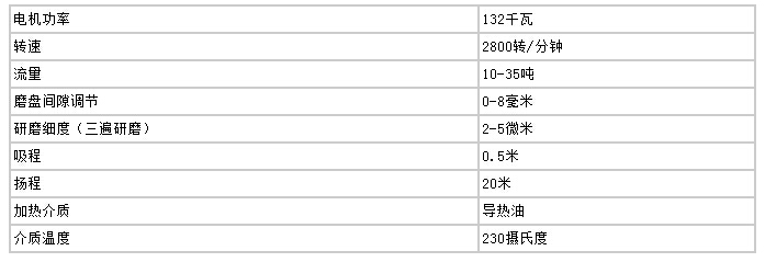 高速剪切均化磨技術(shù)參數(shù)(20T/小時)